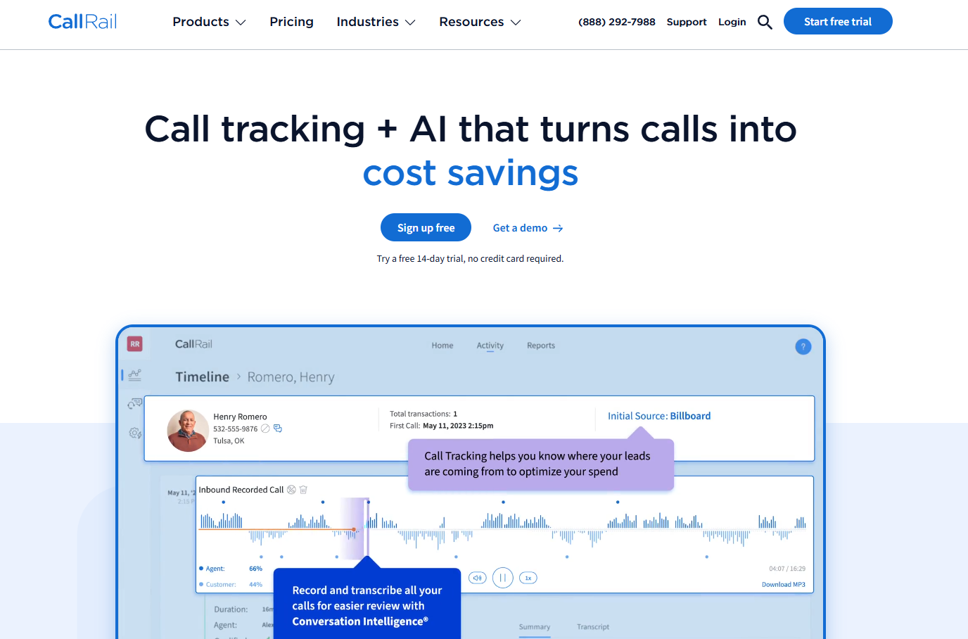 CallRail on robustne platvorm, mis on peamiselt loodud kõnete jälgimiseks, salvestamiseks ja analüütikaks, muutes selle eriti kasulikuks ettevõtetele, kes soovivad hallata juhte ja jälgida telefonikõnede jõudlust. Selle funktsioonid vastavad turundusmeeskondadele ja ettevõtetele, kes sõltuvad raskelt telefonikommunikatsioonist.