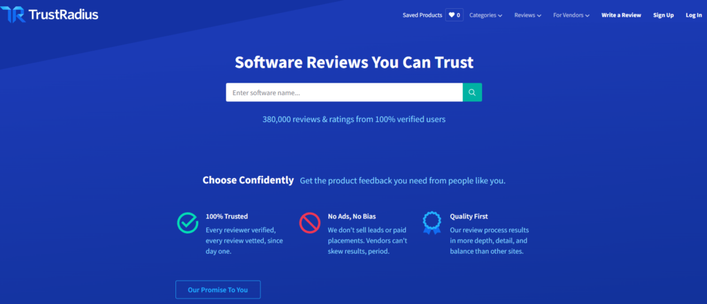 Trustradius on arvustuste platvorm, mis aitab ostjatel teha teadlikumaid otsuseid. Siia klõpsates leiate kogu üksikasjaliku teabe, mida nad ettevõtte profiilide osas pakuvad.