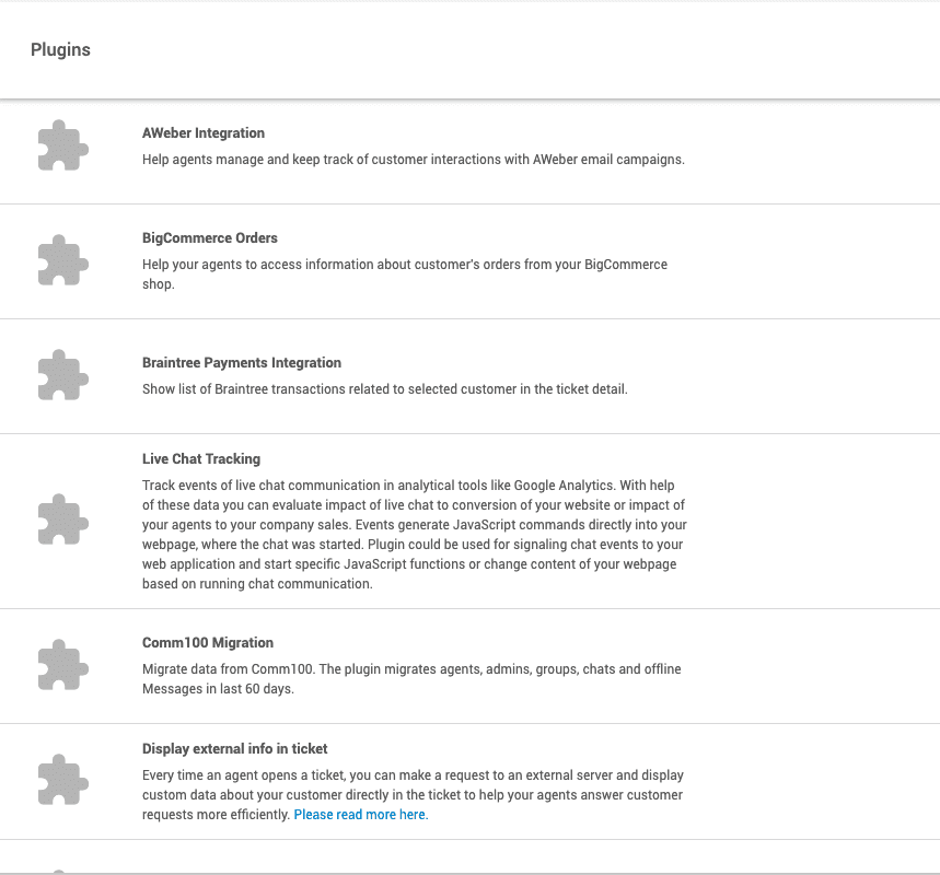 1. Loige oma LiveAgent`i kontole 2. Minge Konfiguratsioon -> Süsteem -> Pluginad 3. Aktiveerige Bigcommerce 4. Looge/Kohandage live vestluse nupp olenevalt enda eelistustest 5. Kopeerige HTML kood 6. Kleepige kood oma Bigcommerce veebilehele