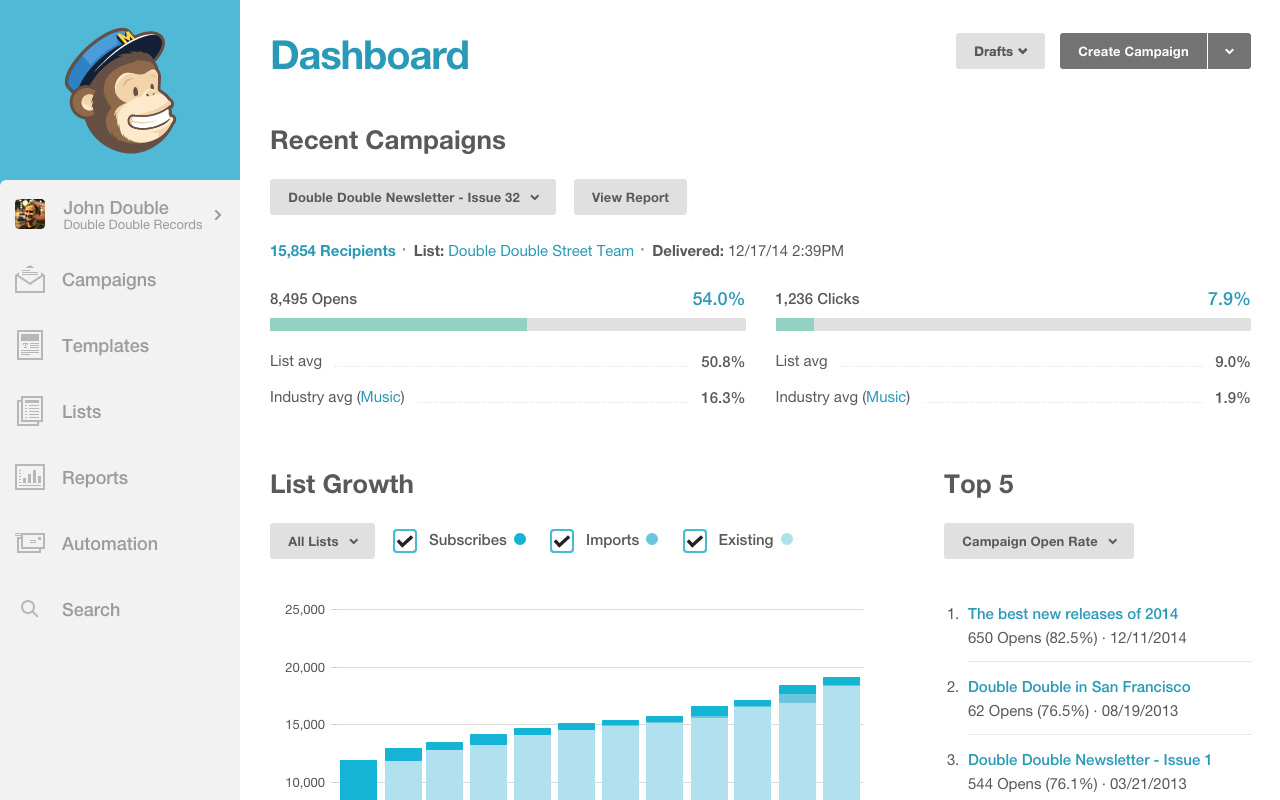 MailChimpi kasutajad kiidavad selle üle, kui suurepärased on selle funktsioonid väikeettevõtete jaoks ja kui lihtne on seda kasutada. Näiteks sellelohistatav e-kirjade koostaja muudab ilusate meilide vormindamise lihtsaks ja selle ulatuslik integreerimisloend muudab andmete sünkroonimise väliste CRM-ide ja muu sellisega lihtsaks.