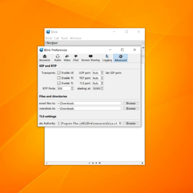 VoIP-teenuse pakkuja ühendamiseks peate klõpsama ülaosas Blinki logo all oleval nupul Blink ja seejärel valima Kontod > Lisa konto. Sisestage oma SIP-aadress ja parool ning oletegi valmis. Peaksite siiski arvestama, et Blink ei pruugi kõigi VoIP teenuse pakkujatega toimida. Mina ühendasin oma Zadarma konto Blinkiga ainult selleks, et saada teada, et ma ei saa helistada. Mul ei õnnestunud põhjust välja selgitada, kuna saadaval pole palju tõrkeotsingu võimalusi.