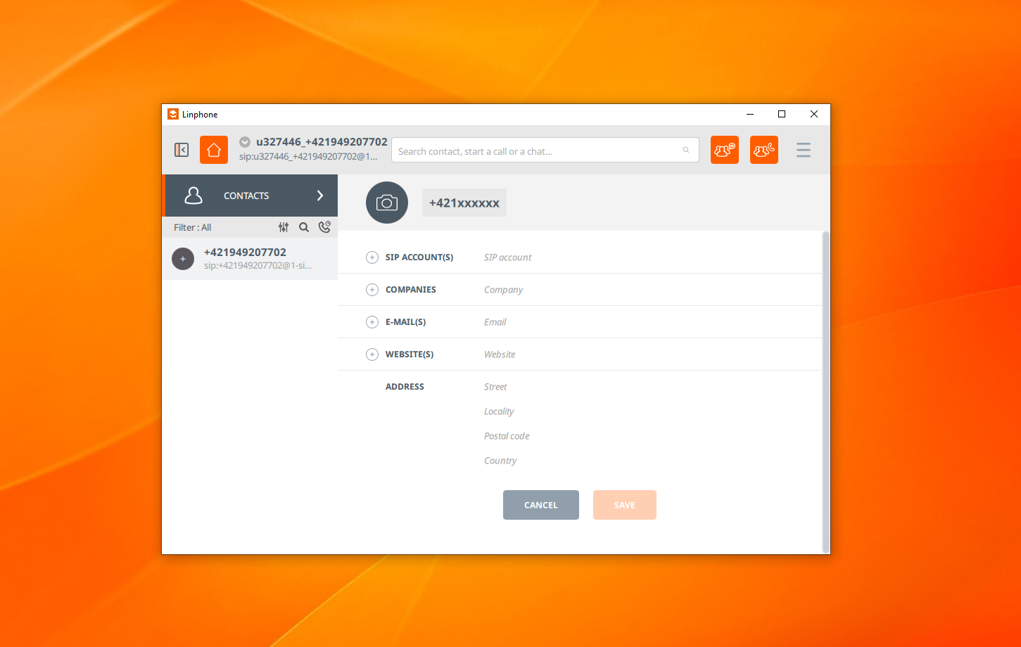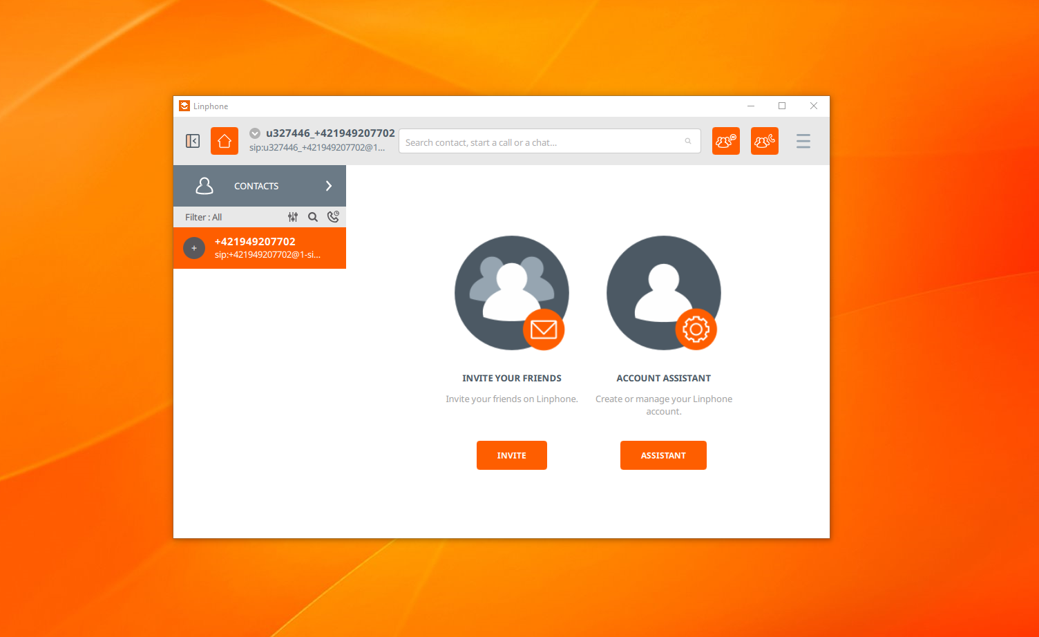 Rakenduse disain näeb välja kaasaegne ja see üllatas mind, kuna Linphone on tasuta avatud lähtekoodiga tarkvaratelefon. Enamikul tasuta tarkvaratelefonidel on tavaliselt nõrgad, aegunud liidesed. Olulised nupud on esile tõstetud silmatorkava oranži värviga, mis köidab teie tähelepanu ja aitab teil navigeerida. See on eriti kasulik, kuna navigeerimine võib alguses tunduda harjumatu.