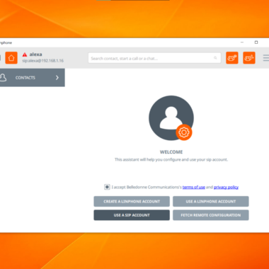 Avatud lähtekoodiga Linphone’i tarkvaratelefoni saab lihtsalt ametlikult veebisaidilt alla laadida ja mõne hetkega arvutisse installida. Paigaldusprotsess on standardne. Kui rakendus käivitus, tervitas Linphone mind kasutajalepingu ja mitme valikuvõimalusega alustamisjuhendiga. Võite luua oma Linphone’i konto, logida sisse, ühendada SIP-konto või käivitada konfiguratsiooni ületoomise.