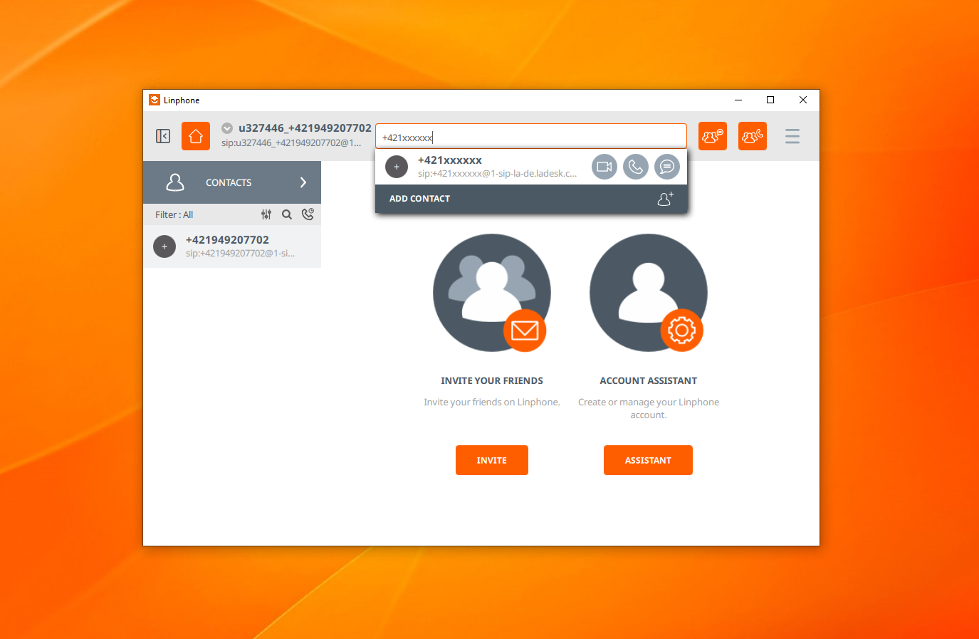 Linphone’i kasutajaliides näeb nii lihtsa rakenduse kohta segane välja. Sellega harjumine võtab veidi aega, kuid pärast seda ei tohiks teil enam raskusi tekkida. Mõned menüüd ja valikud ei tundu alguses loogilised. Näiteks pole rakendusel numbrivalijat, mis on tarkvaratelefoni puhul ebatavaline. Selle asemel näib rakenduse avakuva olevat seadistusjuhend, kus on võimalus kutsuda sõpru, ja kontoassistent.