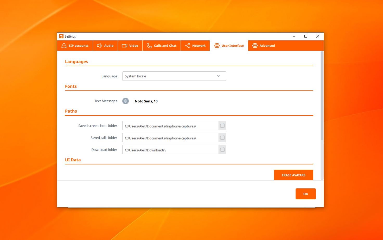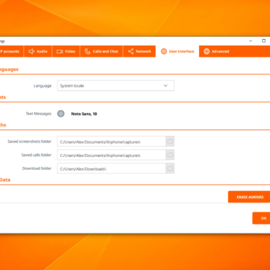 Rakenduse seaded pakuvad üsna muljetavaldavaid valikud ja kasutajad saavad seda vastavalt oma eelistustele häälestada. Lisaks tavalistele helisuvanditele, nagu taasesitusseadme ja salvestusseadme valikud, saate näppida ka helikoodekeid. Sama kehtib video ja videokoodekite kohta. Kõnedel ja vestlustel on oma valikud: automaatne vastamine, automaatne kõne salvestamine, teavitusvalikud ja palju muud. Rakendus võimaldab teil lülituda ka teisele keelele ja isegi valida tekstisõnumite jaoks fonti.