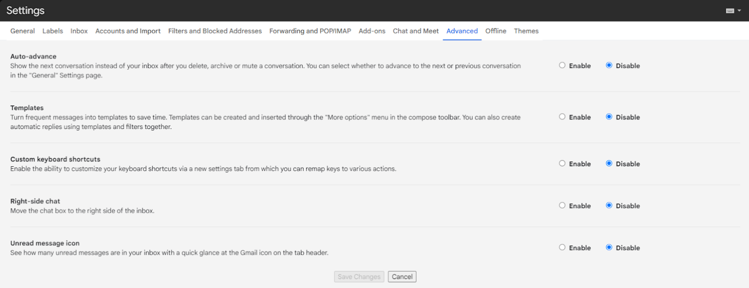 Gmail pakub palju muid funktsioone. Alates Vestluste ja kohtumiste konfigureerimisest kuni kohandatud klaviatuuri otseteede ja mallide lubamiseni on palju võimalusi, mida saate uurida.