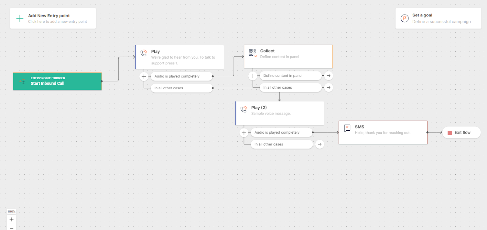 Keeruliste ja kohandatud voogude loomiseks on võimalik konfigureerida palju täpsemaid sätteid. Sõltuvalt teie ettevõtte vajadustest võib teie IVR olla nii algeline või nii keeruline, kui soovite.