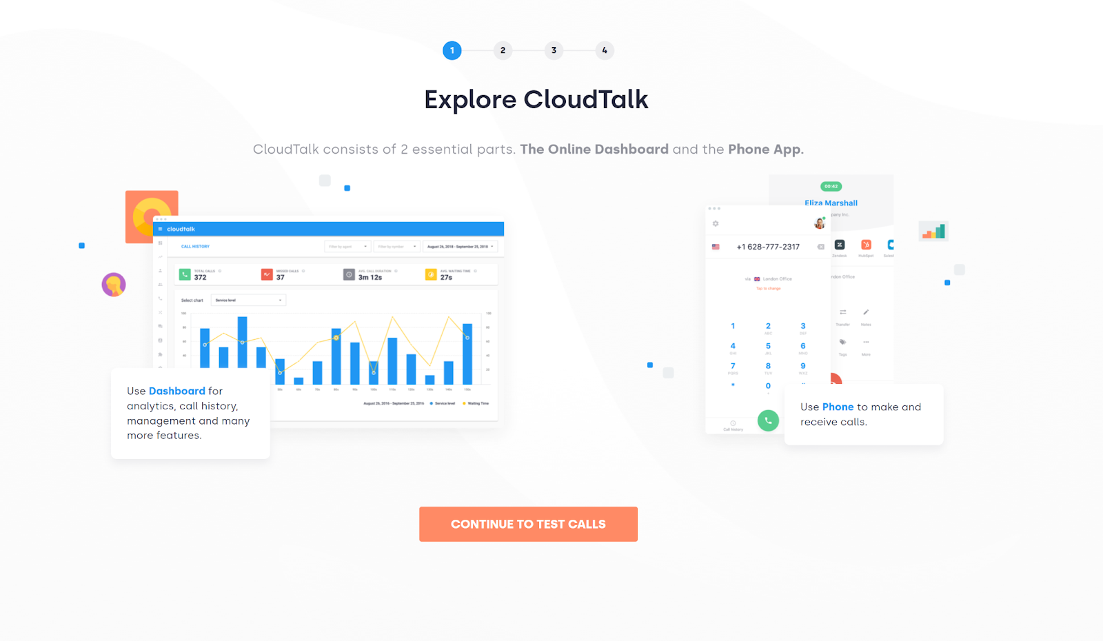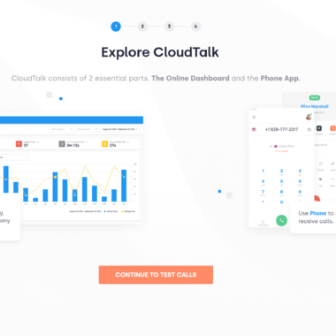 CloudTalk teeb asju algusest peale väga hästi. Tarkvara mitte ainult ei andnud mulle telefoninumbrit testimiseks, vaid ka selgitas hoolikalt ja lihtsalt oma erinevaid osi. Lisaks anti mulle ka võimalus vastata kõnele, et saada aimu, kuidas kõnefunktsiooni kasutada. See on lihtsalt suurepärane ja ma hindaksin seda tüüpi juhendit igat tüüpi tarkvara puhul, olenemata selle eesmärgist. CloudTalk palub teil alla laadida ka CloudTalki telefonirakenduse. Kui olete seadistamise lõpetanud, võite hakata liidest vaatama.