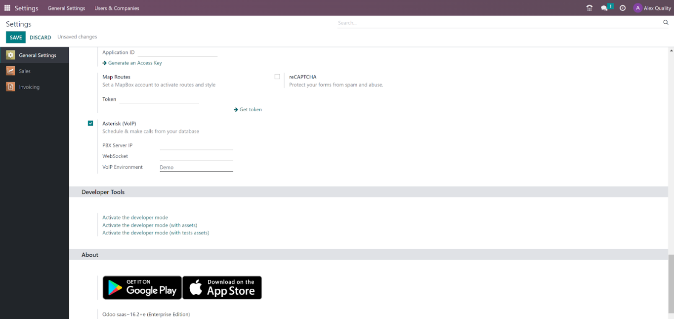 Pärast seda leiate paremast ülanurgast telefoni ikooni. Sellel klõpsates avab Odoo eraldi valimisklahvistiku vidina, mis sisaldab valikuid eelmiste kõnede vaatamiseks, kontaktidele juurdepääsuks ja valikut nimega “järgmised tegevused”. Selle Odoo funktsiooniga aga telefoninumbrit kaasas ei ole, seega peate integreerima numbri oma VoIP-teenuse kaudu, mis on kindlasti tasuline. Odoo VoIP seadetele pääsete juurde üldsätete valiku kaudu ja sealt saate seadistada oma kõnefunktsioonid. Odoo pakub ka paari veebipõhist juhendit, mis võivad teile protsessi täpsemalt selgitada.