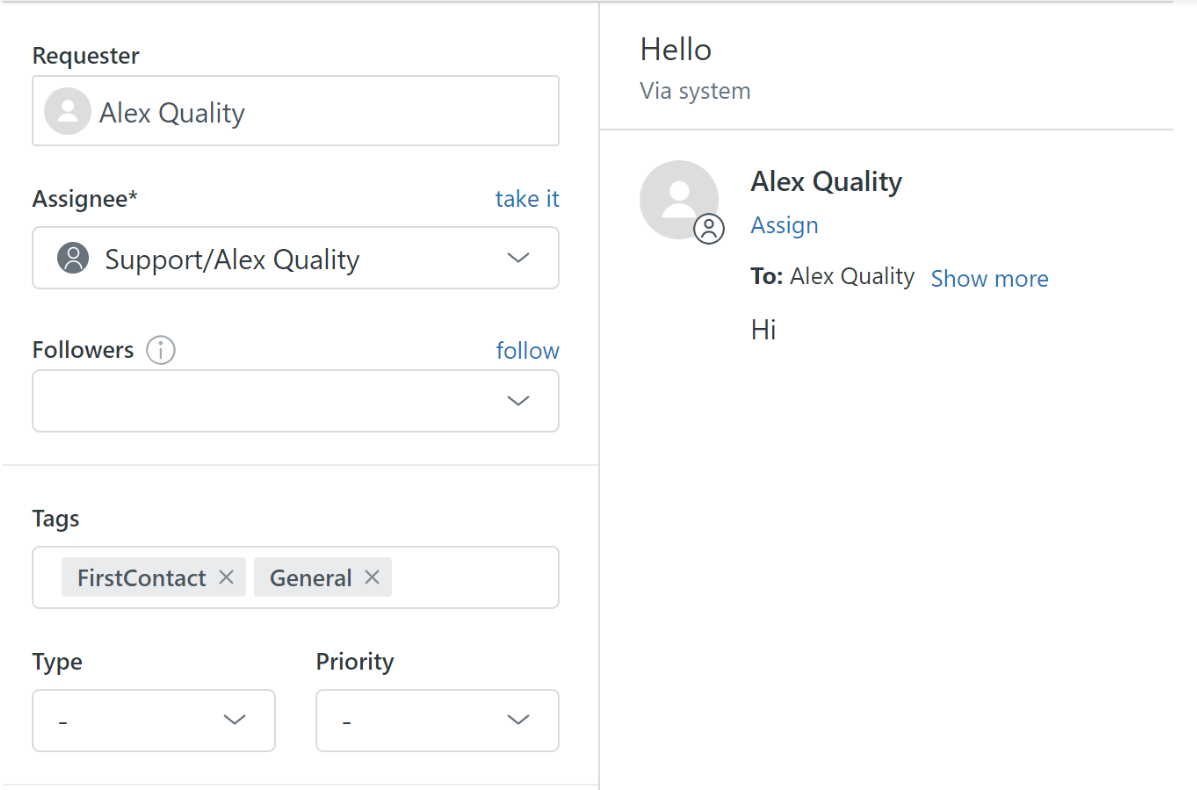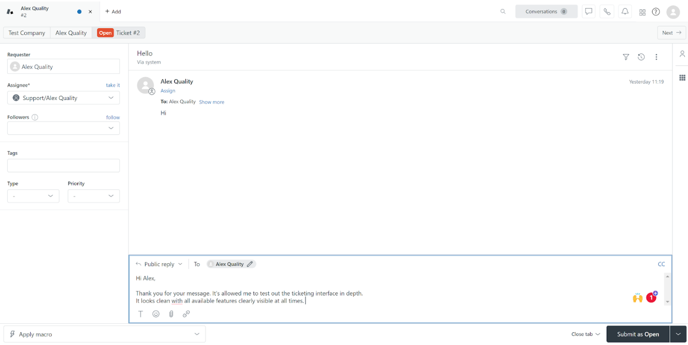 Nüüd on aeg testida Zendeski piletisüsteemi ja vaadata, kuidas see toimib. Test keskendub agendi vaatenurgale. Saatsin endale paar testmeili ning vaatasin, kui kiiresti need kohale jõuavad, ja mul on hea meel tõdeda, et Zendeskil pole kiirusega probleeme. Heitsin ka esimese pilgu pileti sees olevale liidesele.
