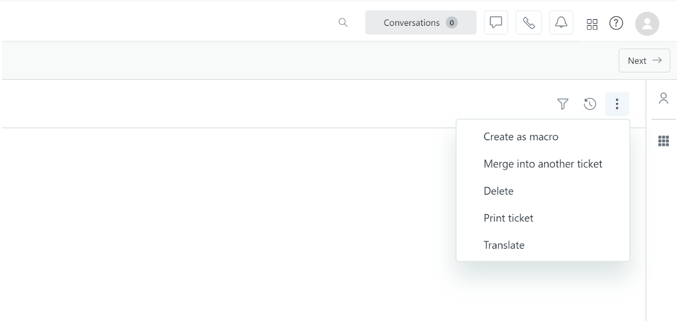 Liides näeb välja puhas ja korras, peaaegu kõik saadaolevad tööriistad on ekraanil nähtavad. Mõned neist on peidetud paremas ülanurgas kolme punkti alla. Arvan, et see disainivalik pole täiesti vajalik. Zendeski piletisüsteem näeb nii puhas välja ja mõned inimesed võivad seda liiga magedaks pidada. Kõikide funktsiooninuppude väljatoomine ja otse ekraanil kuvamine võib selle väga väikese probleemi lahendada.