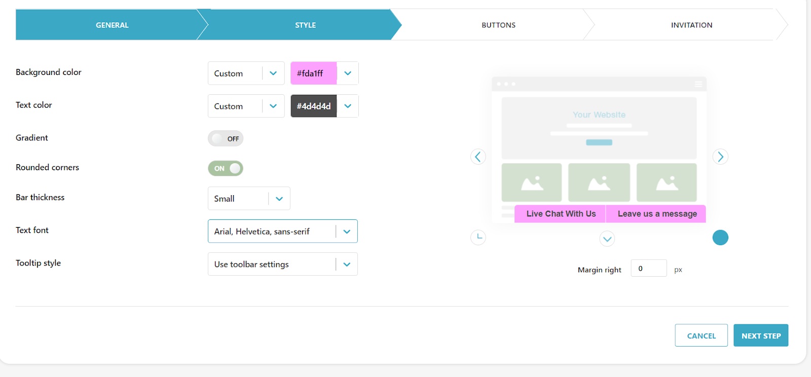 Mulle meeldisid pakutavad kohandamisvõimalused. Saate kohandada peaaegu kõiki teie saidil kuvatava reaalajas vestluse nupu visuaalseid aspekte.