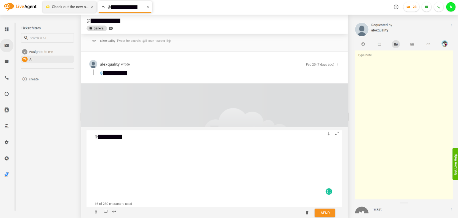Vastamine oli ülilihtne mitte ainult hõlpsasti kasutatava liidese tõttu, vaid ka tänu saadaolevatele piletisüsteemi funktsioonidele. Sain juurdepääsu valmiskirjutatud vastustele, manustele, märkmetele ja muudele suurepärastele funktsioonidele. Sama kogemus oli Twitteri piletitele vastamisega ja jällegi olid kõik funktsioonid piletites kasutamiseks hõlpsasti saadaval. Instagram ei olnud samuti selles osas erand, kõik toimis sama hästi kui eelmistes kanalites.