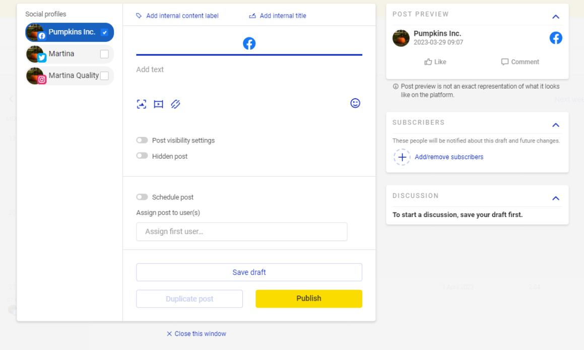 Lisaks kliendisuhtluse haldamisele võimaldab NapoleonCat ajastada postitusi teie ühendatud sotsiaalmeedia kanalites.