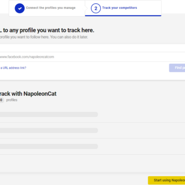 Sealt edasi oli NapoleonCati pakutud teine samm minu konkurentide jälgimine. Näidisena valisin NapoleonCati enda Facebooki lehe. Seejärel vajutasin nuppu Alusta NapoleonCati kasutamist.