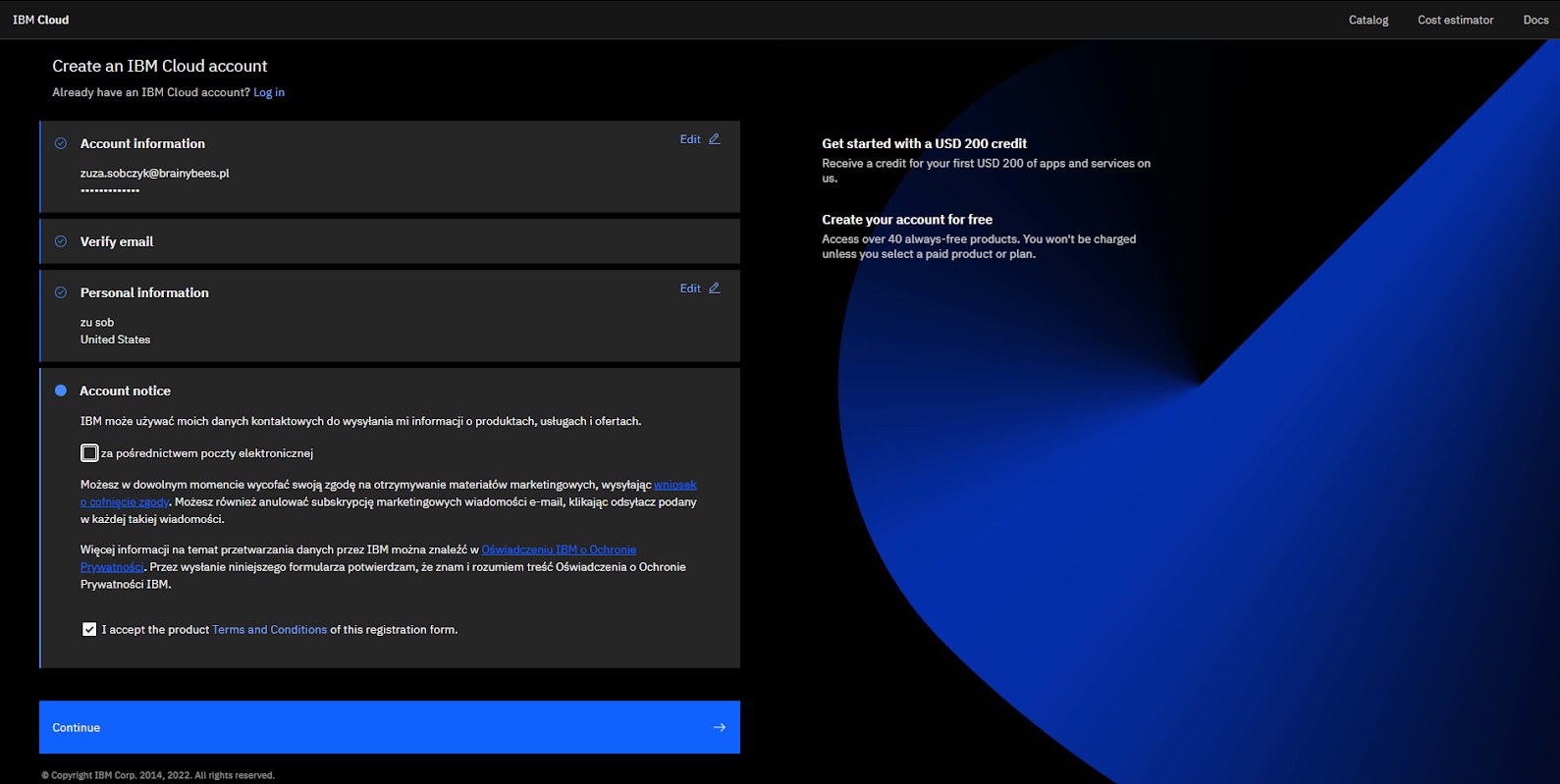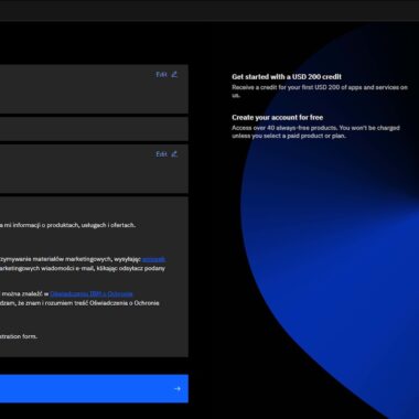 Minu üllatuseks juhtus midagi pettumust valmistavat. Ma ei saanud konto loomisel ühtegi oma krediitkaarti autoriseerida. Veelgi enam, minu käibemaksukohustuslase numbrit ei olnud üheski konfiguratsioonis võimalik kontrollida, mis ärritas mind veelgi. Seetõttu võttis kogu registreerimisprotsess umbes tund aega ja pean tunnistama, et see ei olnud sugugi sujuv. Ma ei oodanud neid probleeme, kuid need ilmusid siiski. See võib olla tingitud sellest, et minu kaardid ja ettevõte on registreeritud Poolas, kuid see ei tohiks olla probleem. Registreerumine ei tohiks teile probleeme tekitada, isegi kui olete seda tüüpi tööriistadega uustulnuk, kui teil on olemas mandaadid, mida IBM aktsepteerib.