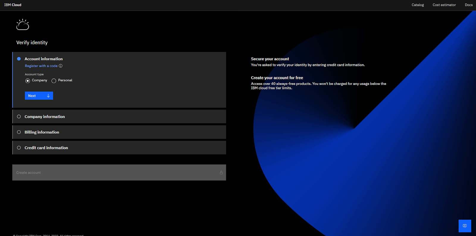 Soovin luua tasuta IBM Cloudi konto ilma krediitkaarti või arveldusteavet esitamata.