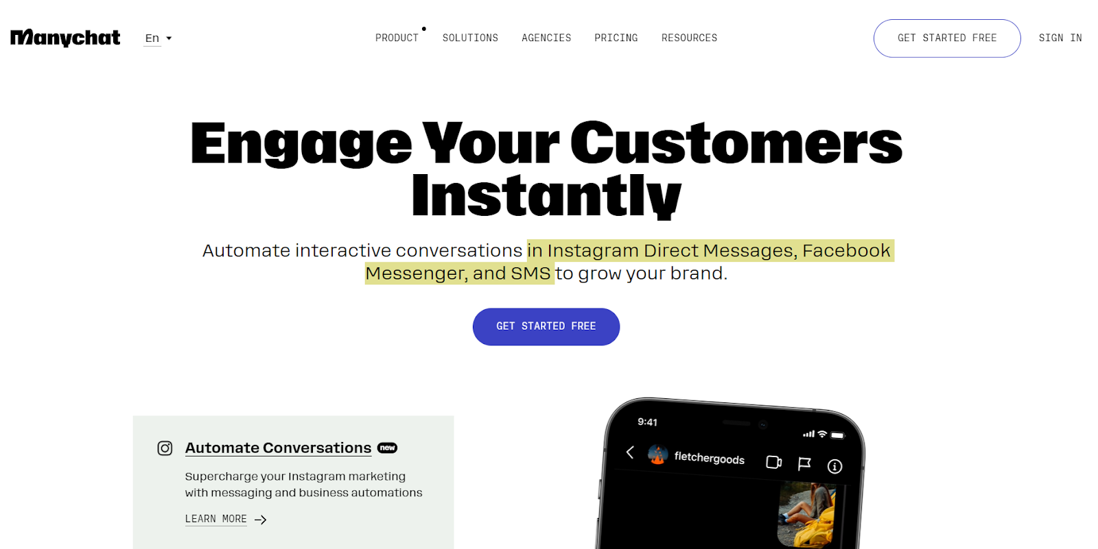 Manychat on vestlusrobotite ehitamise platvorm, mis on loodud interaktiivsete vestlusrobotite kujundamiseks Instagrami otsesõnumites, Facebook Messengeris ja SMS-ides. Tarkvara pakub visuaalset drag-and-drop liidest, mis võimaldab kasutajatel kujundada ja kohandada oma vestlusroboteid ilma koodi kirjutamata. Platvorm pakub ka mitmeid atraktiivseid funktsioone, näiteks eelseadistatud malle, vaatajaskonna segmenteerimist, ringhäälingut ja analüüse.