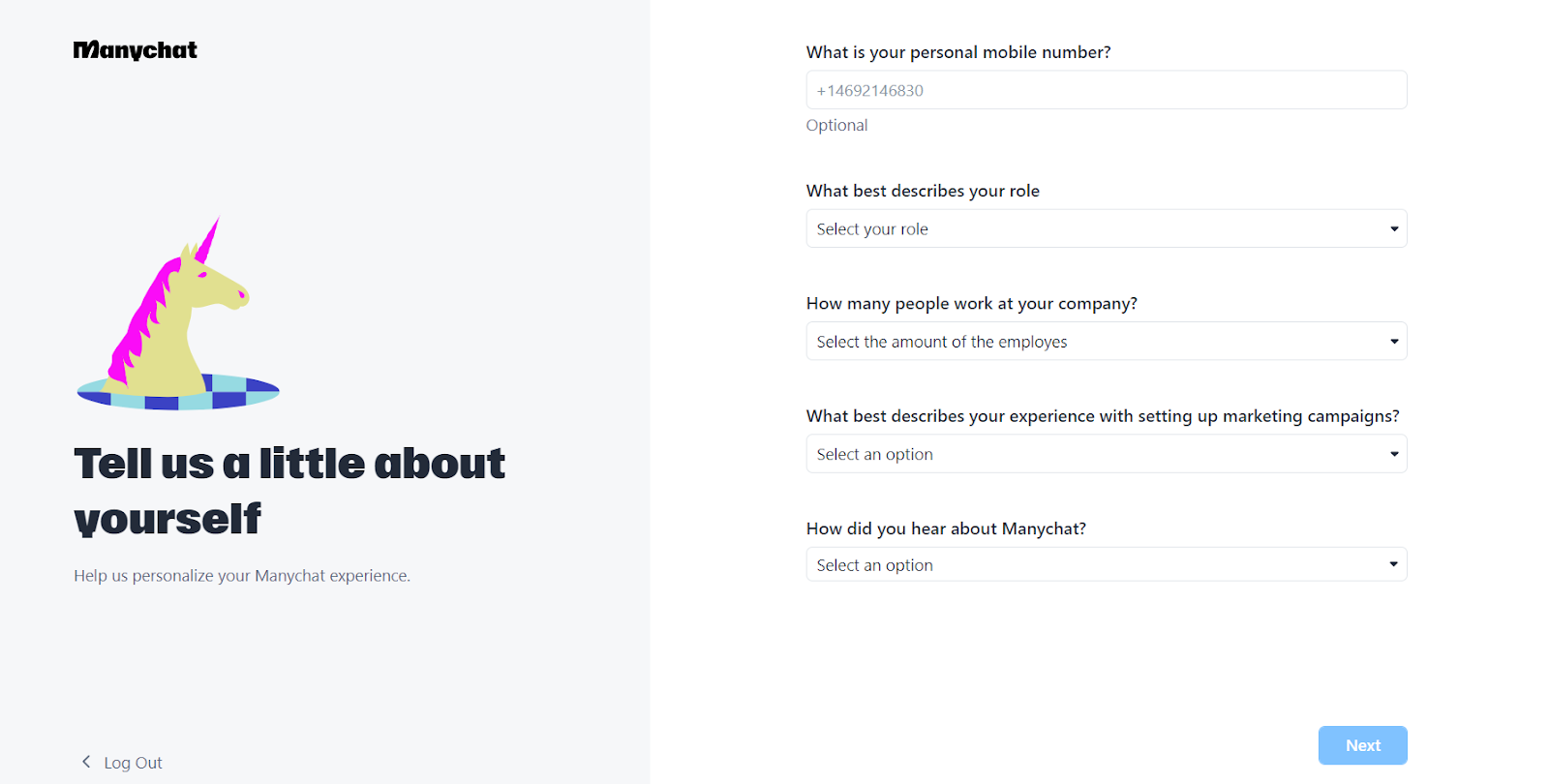 Registreerimisprotsessi ajal pakub Manychat lihtsat kasutuskogemust, mis aitab kasutajatel oma vestlusrobotit seadistada. Ma ütleksin, et Manychatis registreerumiseks kuluv aeg sõltub sellest, kas kasutaja on sarnaste registreerumisprotsessidega varasemalt kursis. Üldiselt võib installiprotsess kesta mõnest minutist mitme minutini.