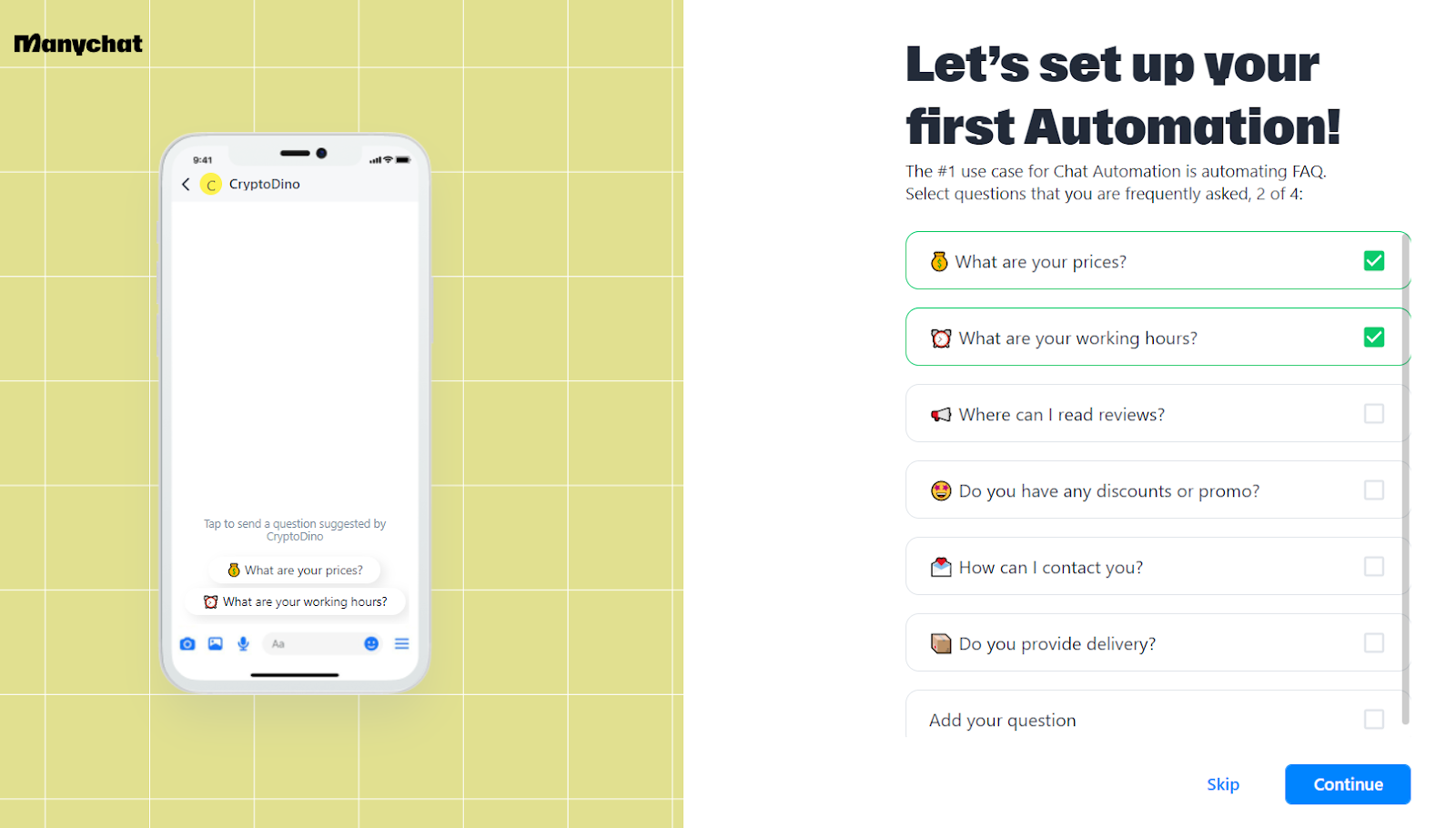 Manychat püüab teha installiprotsessi algajatele võimalikult lihtsaks. Tarkvara on loodud kasutajasõbralikuks ja intuitiivseks. Minu arvates pakub ettevõte laialdast tuge ja ressursse, et aidata kasutajatel kiiresti tööle asuda.